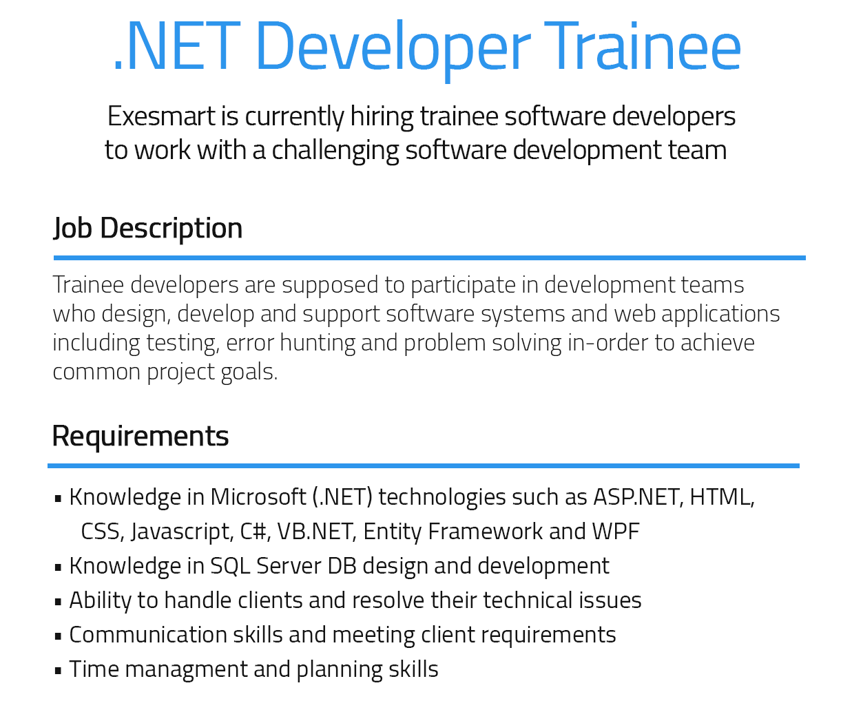 Exesmart is a dynamic and innovative company that values skilled individuals who are passionate about technology and have a desire to excel in their careers. We offer an exciting and stimulating work environment where employees can explore their potential and grow their skills. Our team members are provided with challenging projects and given the opportunity to collaborate with experts in the field.